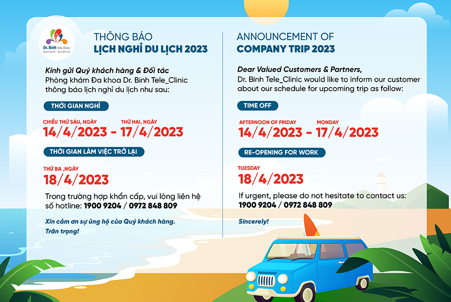 Aiming to build a sustainable and cohesive corporate culture among staff, Dr. Binh Tele_Clinic will organize an annual trip this week. This is also an opportunity for us to re-energize to continue to be more enthusiastic in our work and provide customers with better and better medical services.